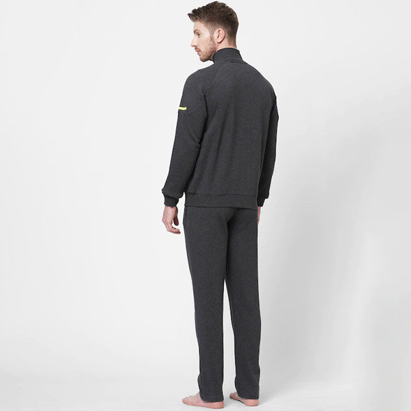 Men Charcoal Solid Night Suit
