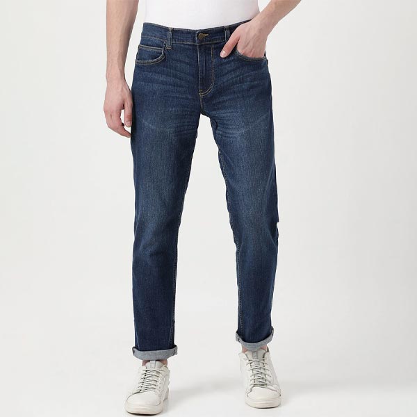 - Dark shade, light fade blue jeans
