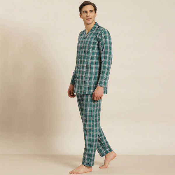 This classic night suit will help you set the right tone for any season. Club it up with those fluffy room slippers for a win-win look for leisure hours.